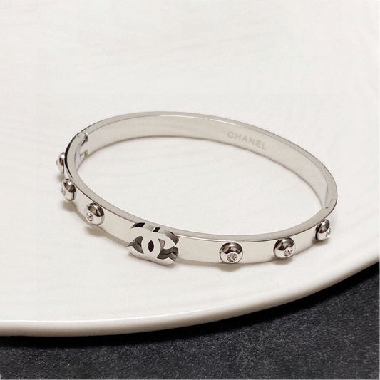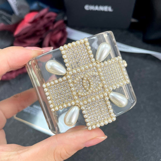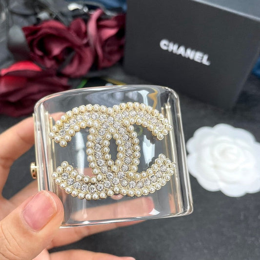 18K CC Transparent Pearl Logo Cuff Bracelet