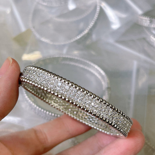 18K White Gold Perlée Diamonds Three Rows Bracelet