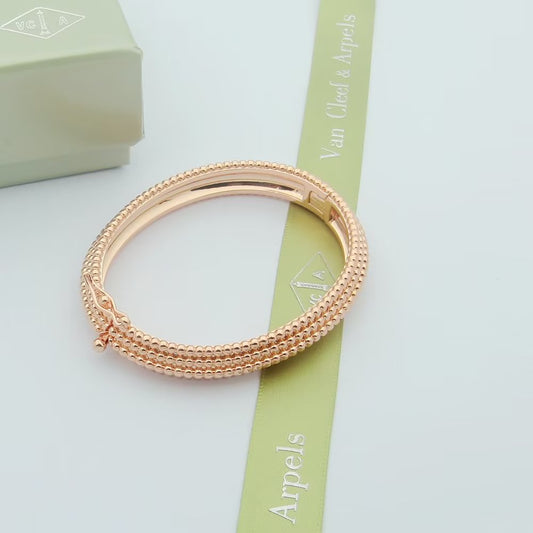 18K Rose Gold Perlée Diamonds Three Rows Bracelet