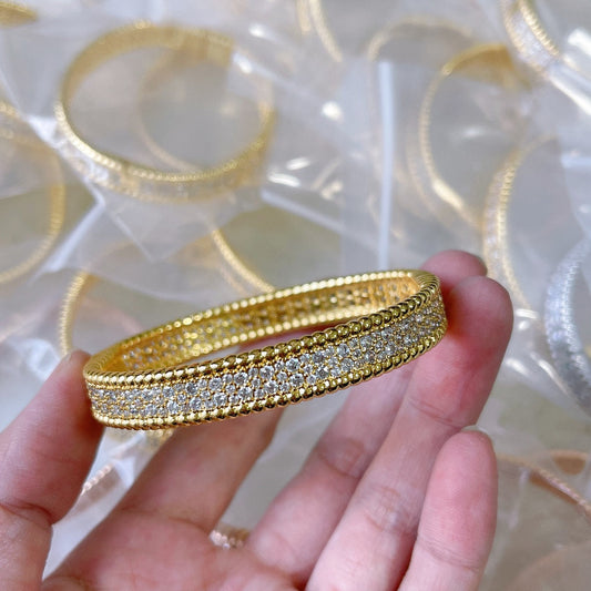 18K Yellow Gold Perlée Diamonds Three Rows Bracelet