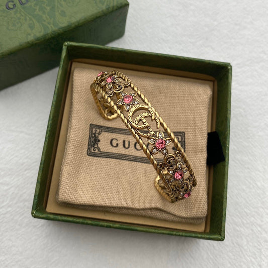 18K Double G Red Crystal Flower Cuff Bracelet