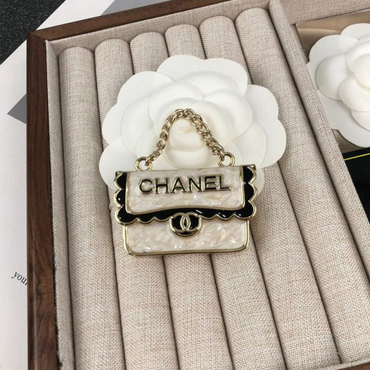18K CC White Bag Brooch