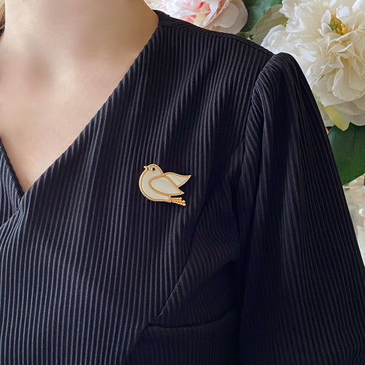 18K Lucky Animals Dove Clip Brooch