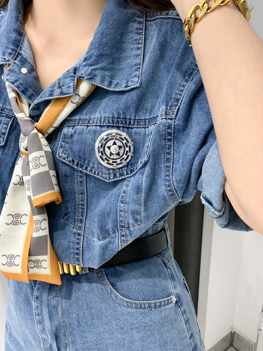18K CC Black Star Brooch