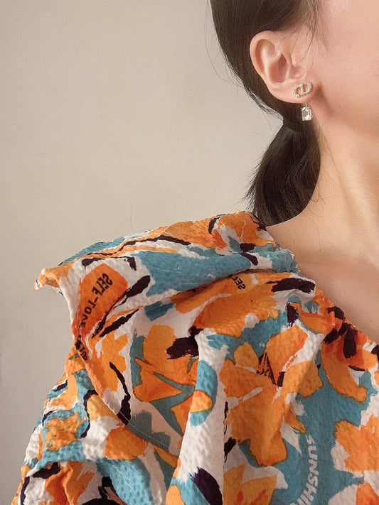 18K CD Tribales Eiffel Tower Charm White Pearls Earrings