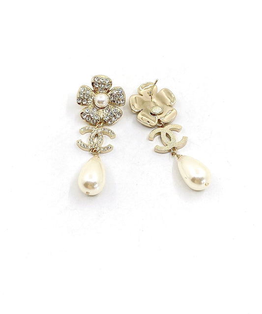 18K CD Dragonfly/ Butterfly Pearl Earrings