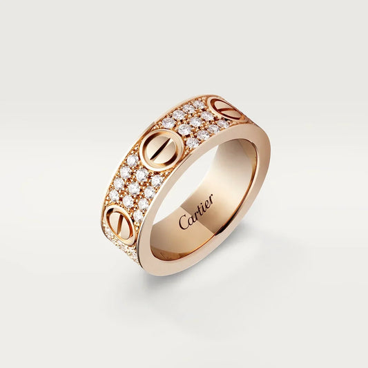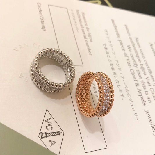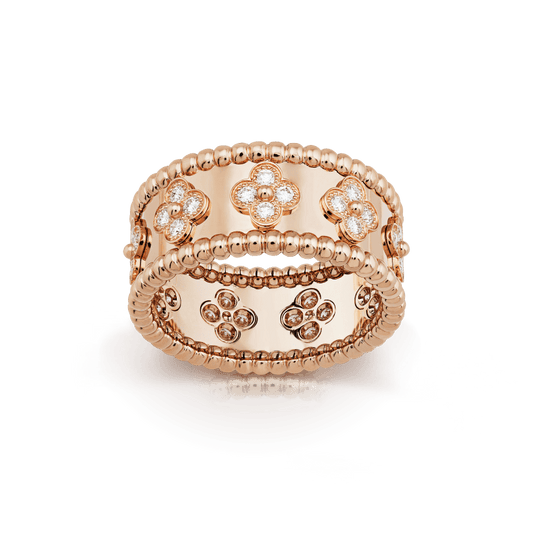18K Rose Gold Perlée Diamonds 3 Row Ring