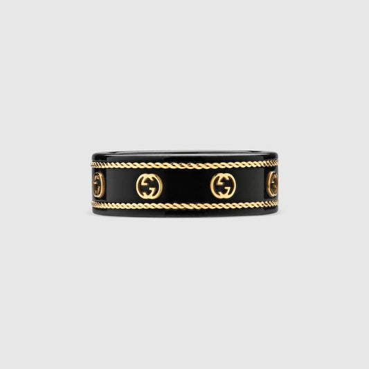 18K Double G Interlocking G Icon Black Corundum Ring