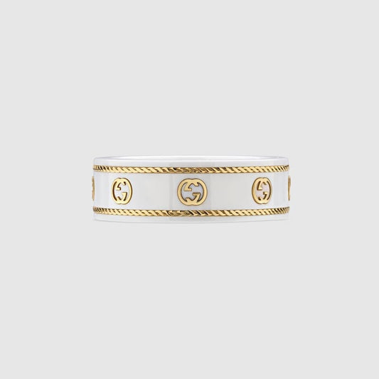 18K Double G Interlocking G Icon White Zirconia Ring