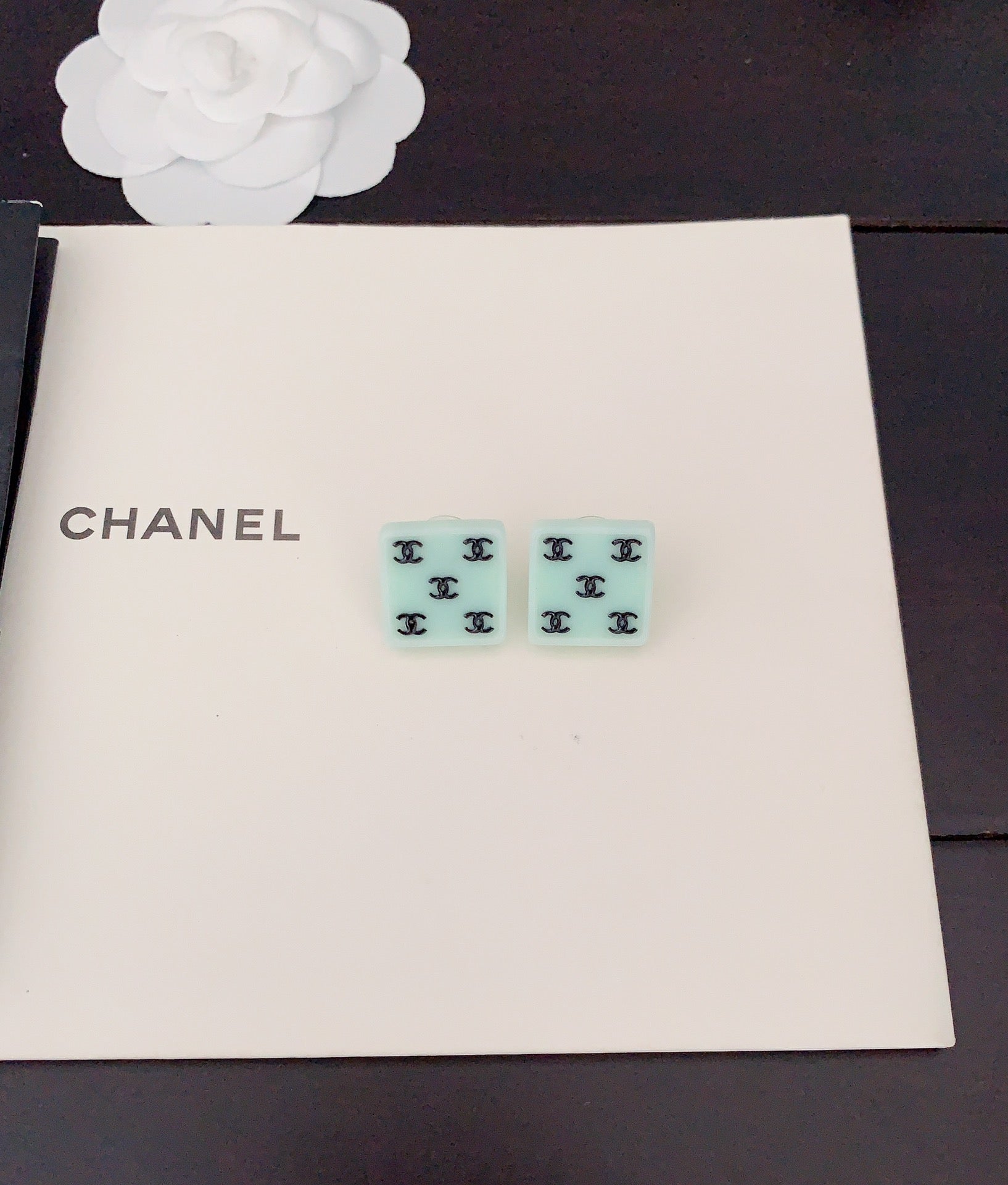 18K CC Green Resin Earrings