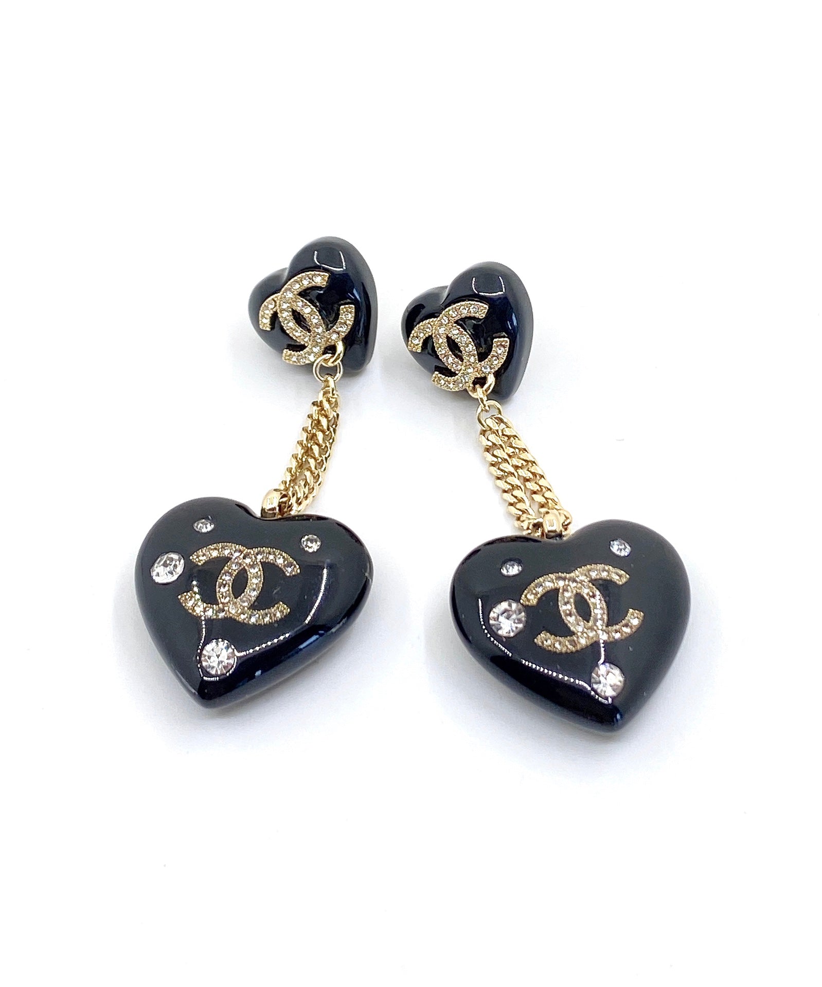18K CC Heart Pendant Earrings