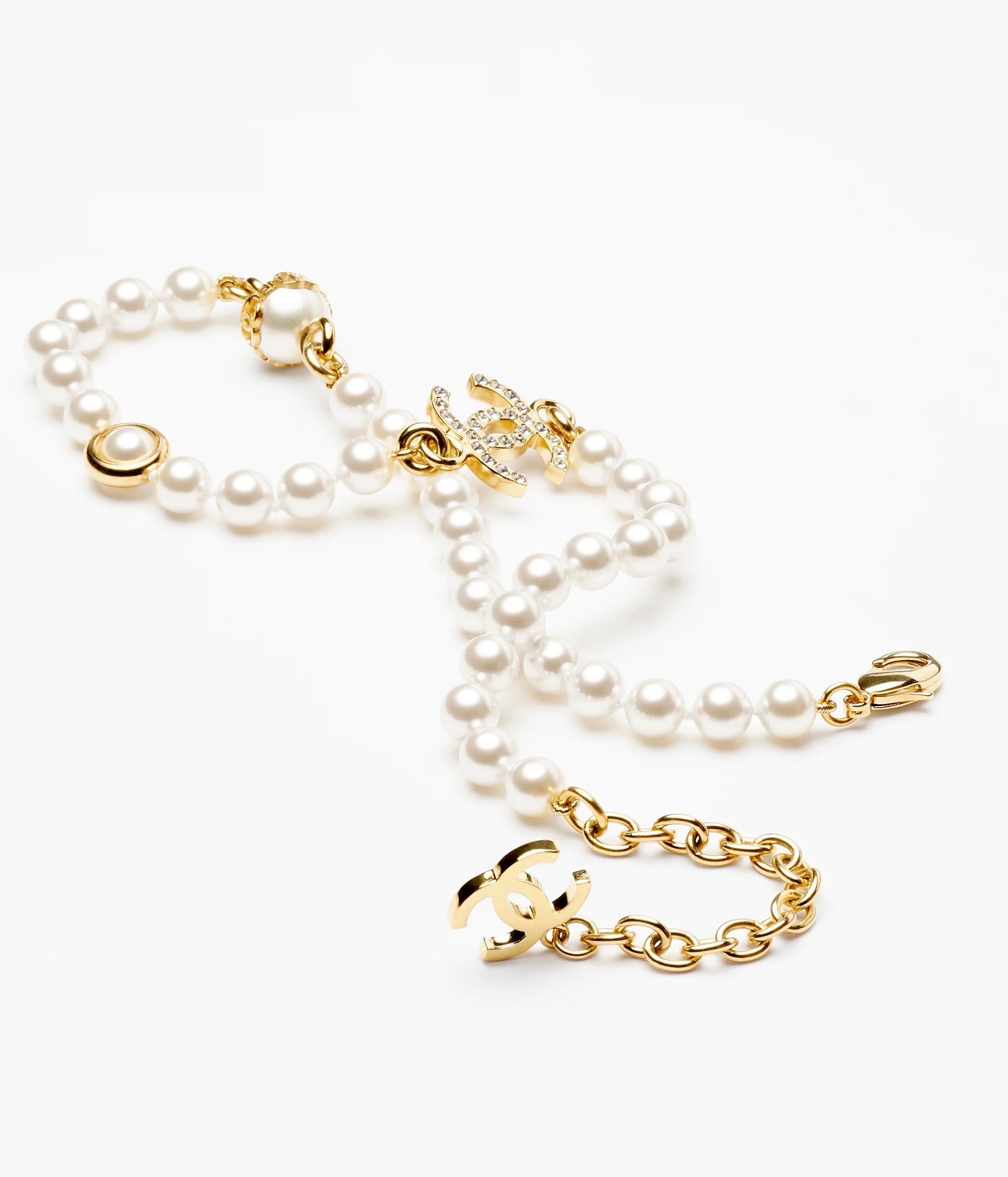 - Yellow Gold-colour hardware, Chain Link, Pearls