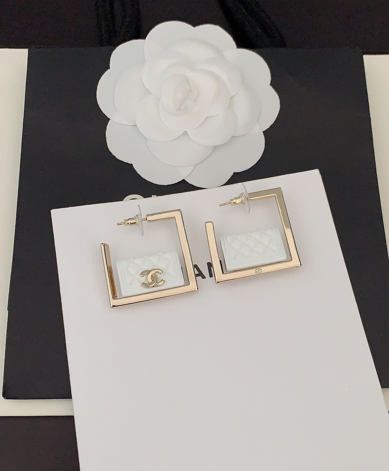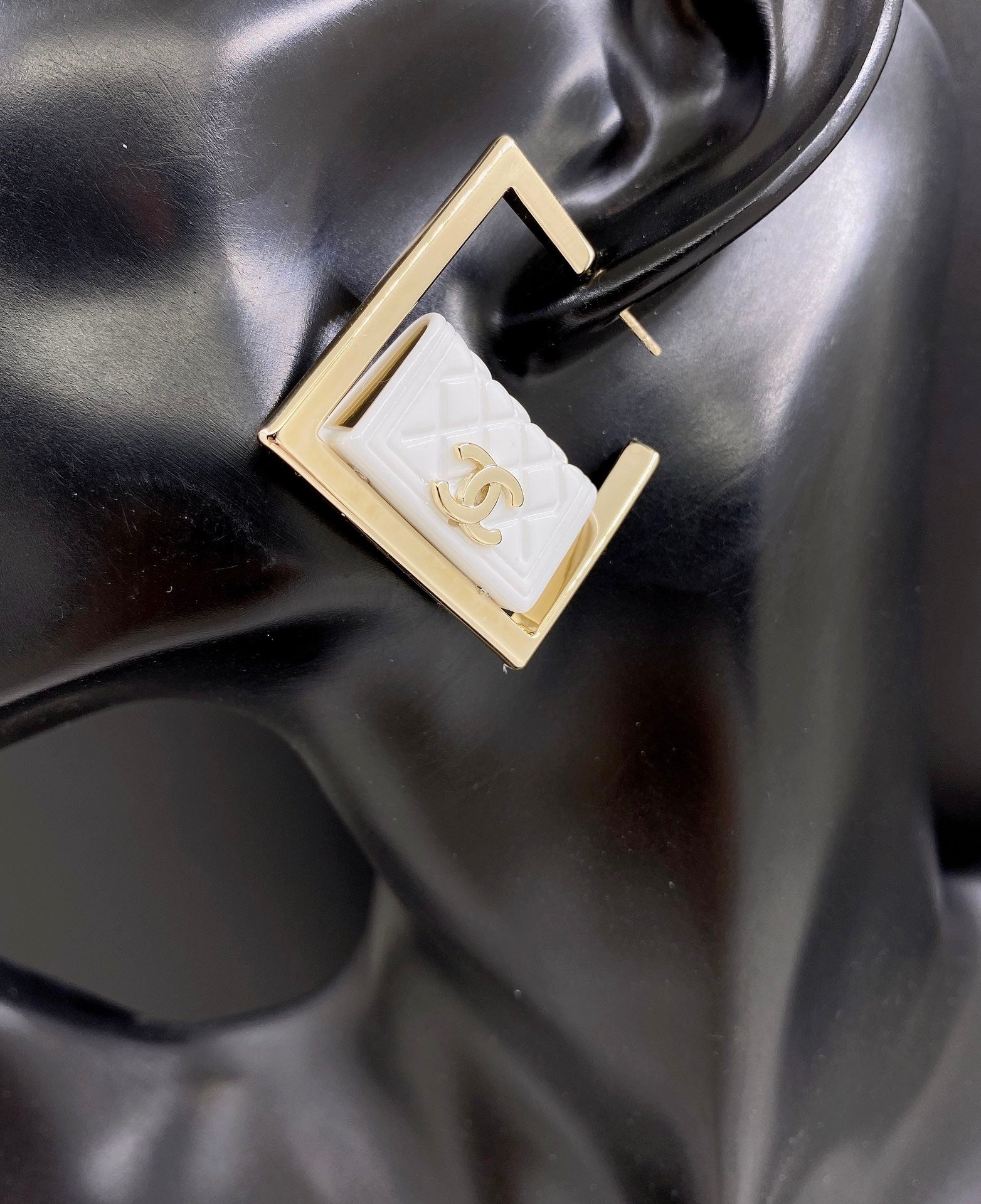18K CC White Bag Pendant Earrings