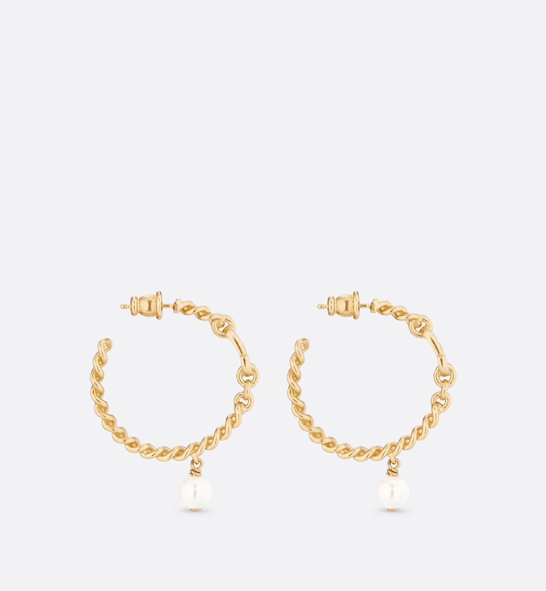 - Yellow Gold-finish metal, White resin pearl, Push clasp