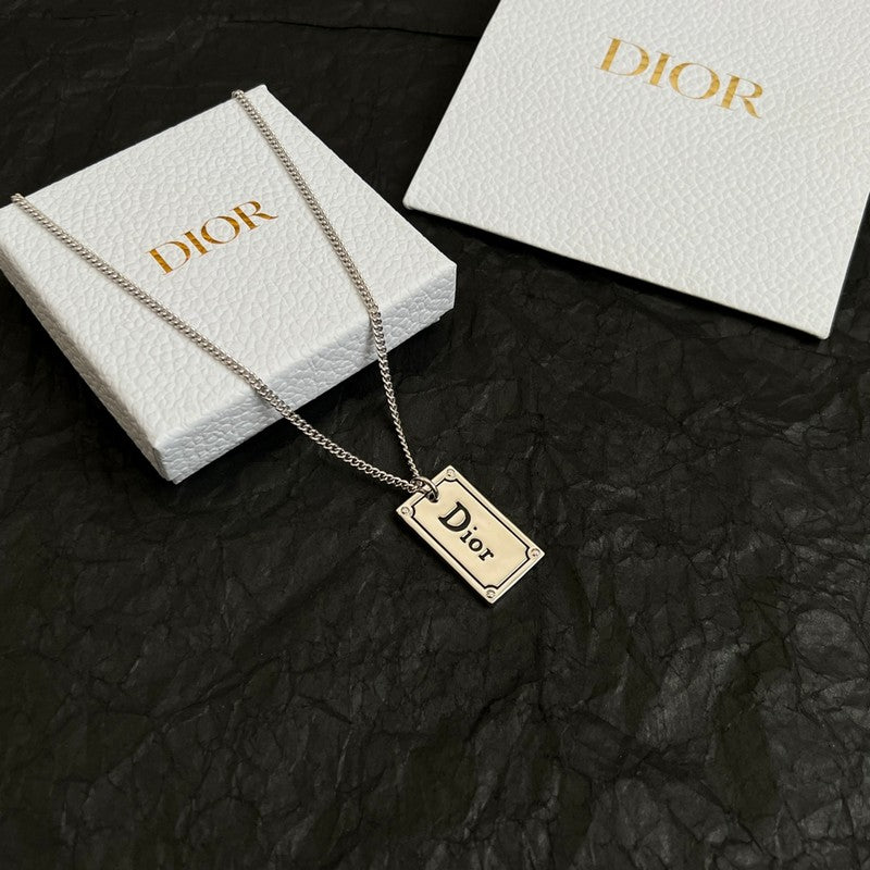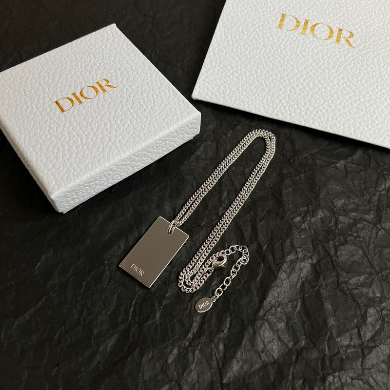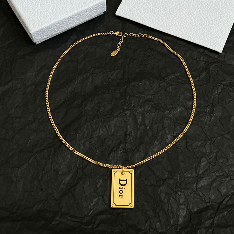 18K CD Oblique Plate Pendant Necklace