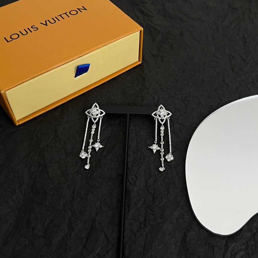18K Louis Diamond Flowers Long Earrings