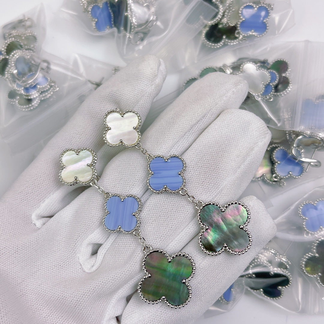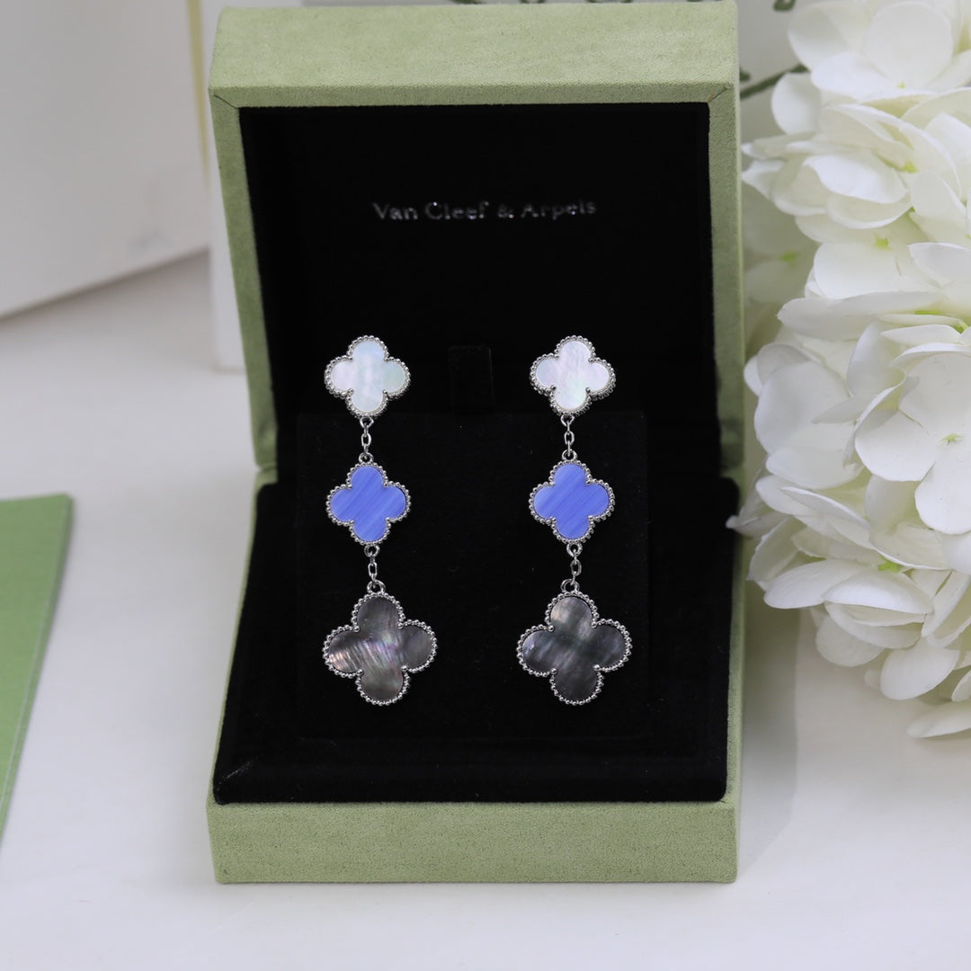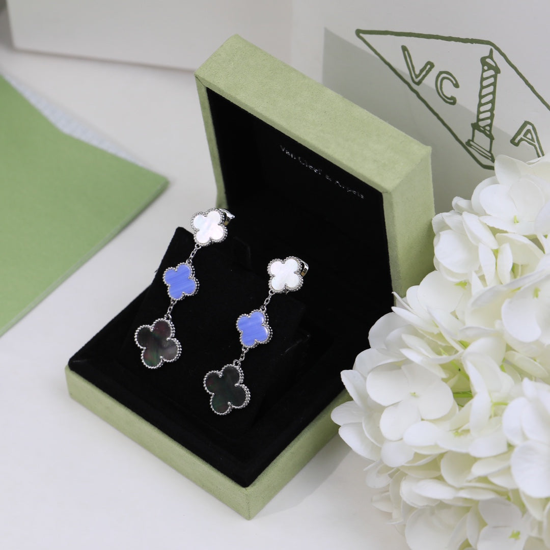 - Earrings with 18K White Gold, Pearls & Chalcedony