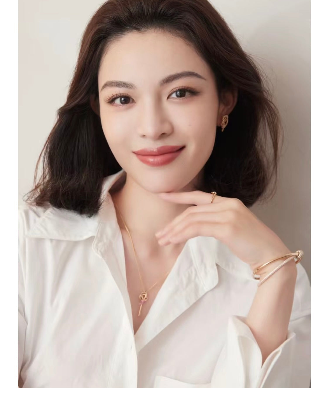 18K T Keys Woven Pink Diamonds Medium Necklace