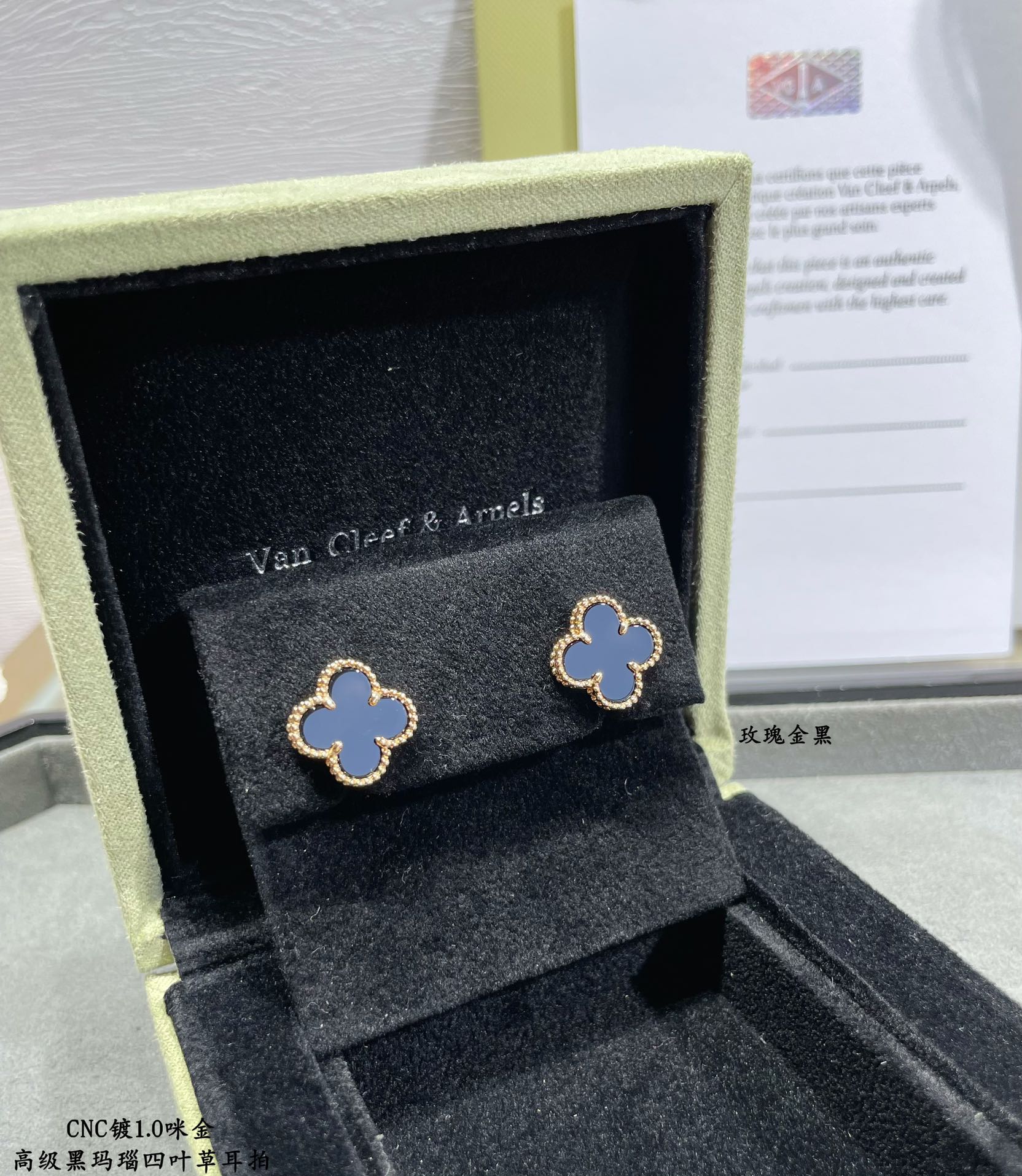 18k Vintage Alhambra Black Earrings