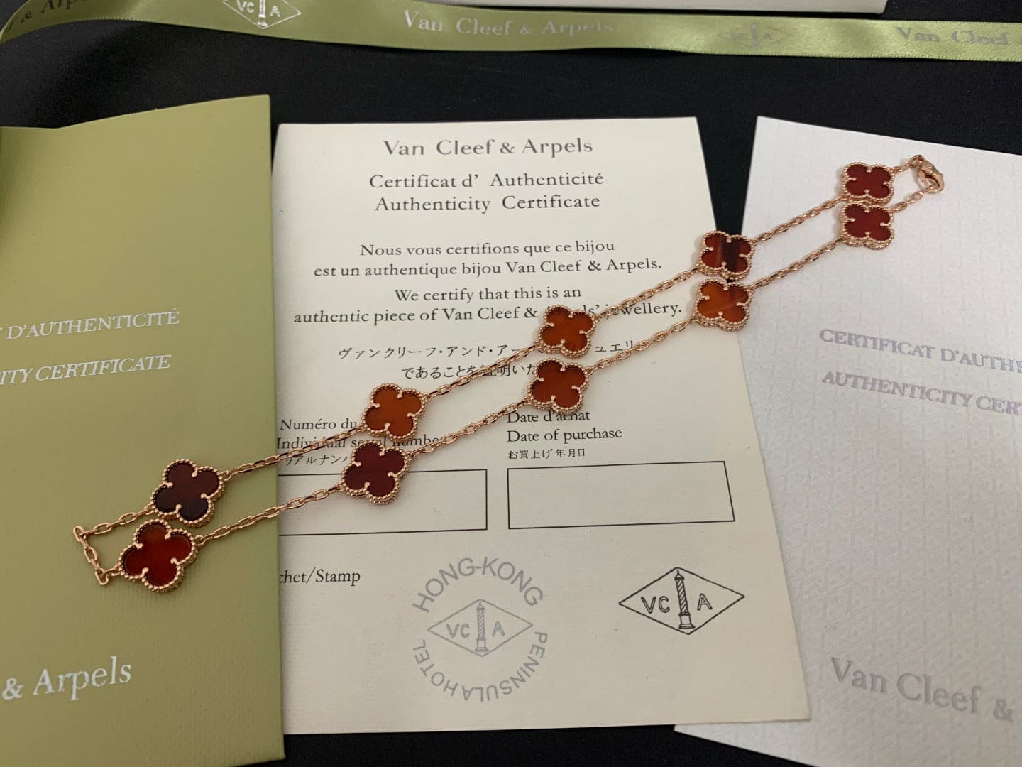 18K Vintage Alhambra Carnelian 10 Motifs Necklace