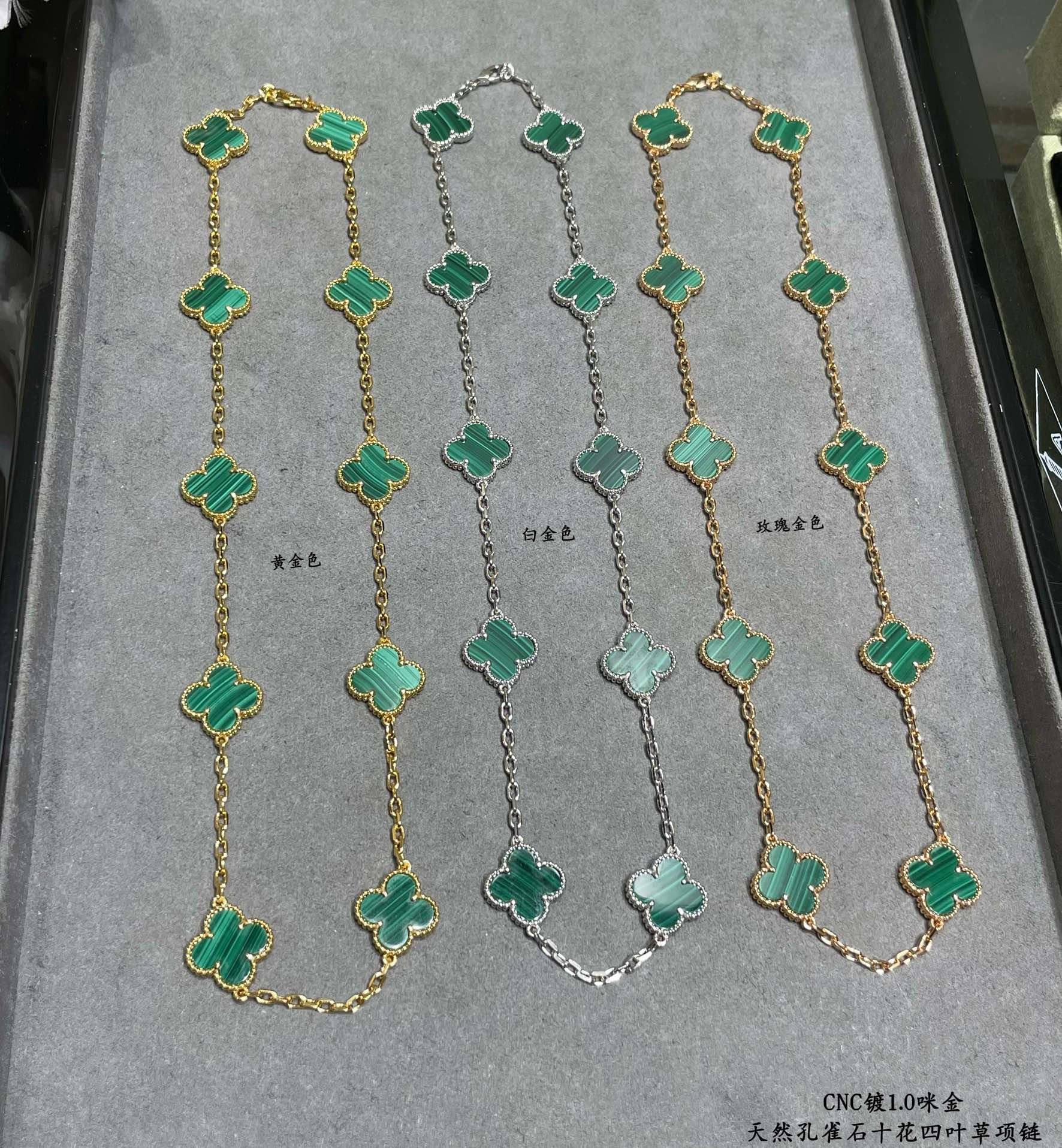 18K Vintage Alhambra Malachite 10 Motifs Necklace