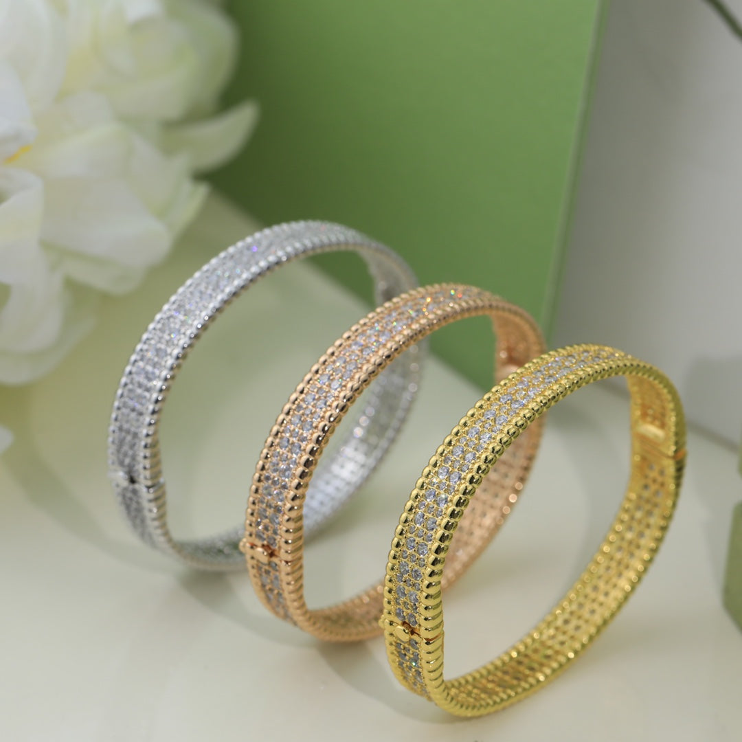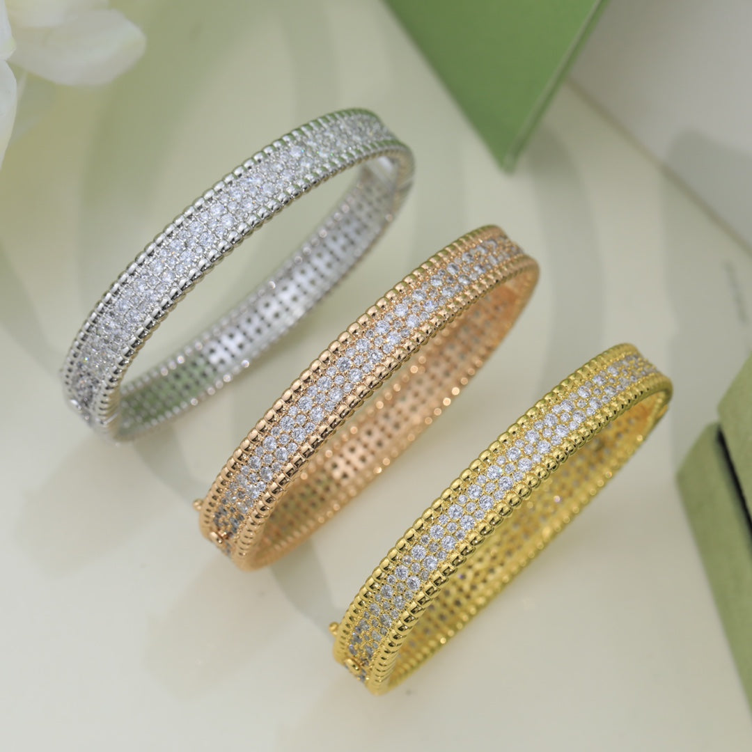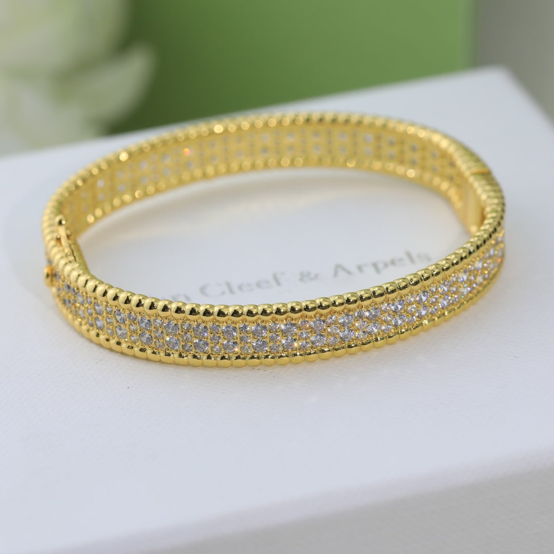 18K Yellow Gold Perlée Diamonds Three Rows Bracelet